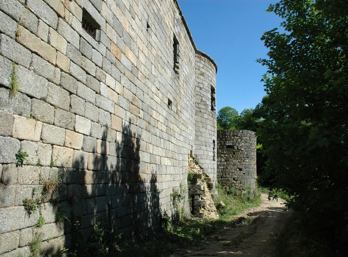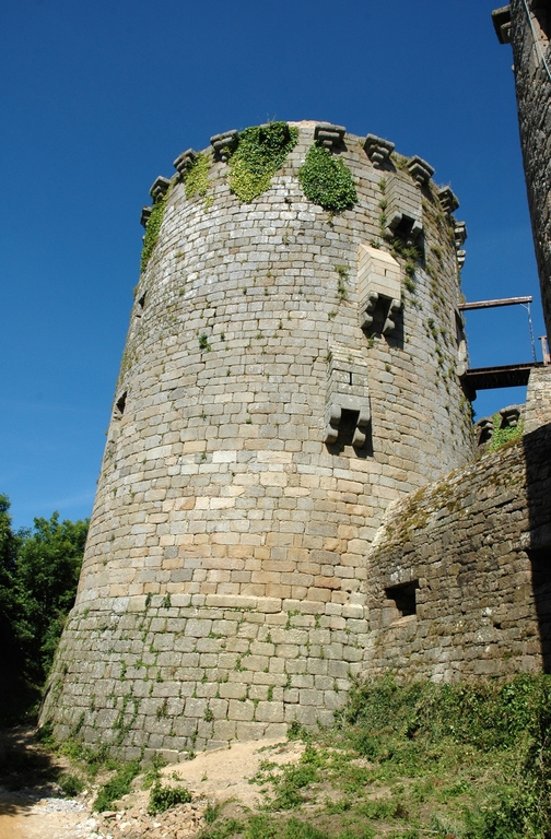 Un rapide examen des maçonneries nous renseigne un peu sur l'histoire du monument. Le grand appareil régulier assisé est attribuable aux campagnes de reconstruction quasi-totale du château au 15e siècle. Les traces d'appareil moins régulier visibles dans certaines parties hautes et de reprises avec percements d´embrasures à la française correspondent à la modernisation de la place, lors des guerres de religion, dans la seconde moitié du 16e siècle. Ce n´est qu´au sein du châtelet d'entrée que l'on distingue assez nettement la trace des deux tours qui jouxtaient l´ouvrage primitif, démantelé à la fin du 14e siècle.