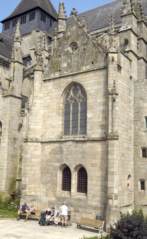 Les bras de transept, dépourvus de chapelles orientées ou de collatéraux, présentent par rapport au vaisseau central du chœur un important décrochement en hauteur, partie qui se retrouve à Saint-Sauveur. L'absence de tout contrebutement à l'extérieur y reflète l'emploi, à l'intérieur, d'un lambris de bois imitant des voûtes d'ogives. Ce choix de faire cohabiter vraies et fausses voûtes, reprenant une vieille habitude des constructeurs bretons, s'explique aussi sans doute ici par un souci d'économie.