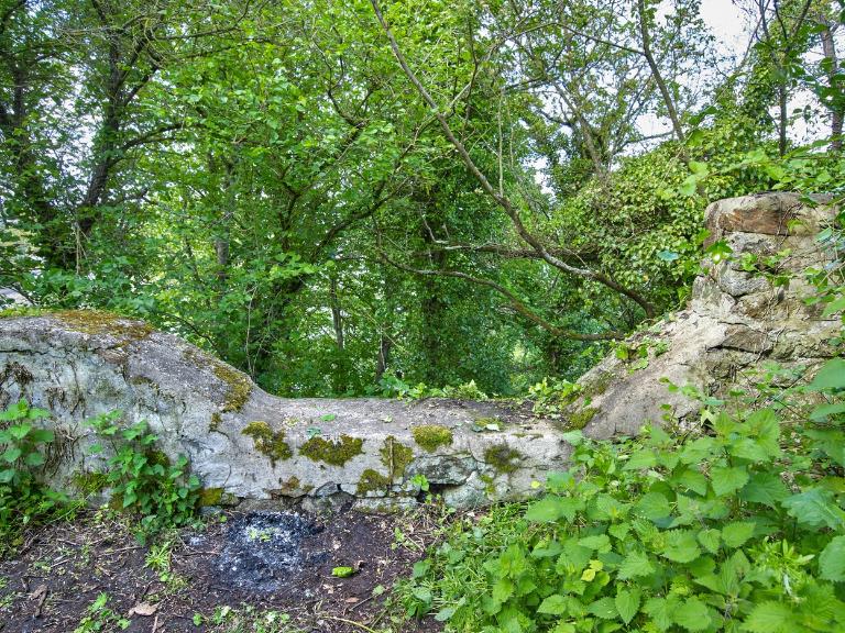 - sur la pente à l’Est, une porte piétonne est située dans l’éperon du mur de clôture.
