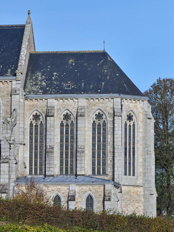 Le chœur s'étend sur une longueur de trois travées droites et se prolonge par une vaste chapelle d'axe. Dans l'épaisseur des murs latéraux sont aménagés deux enfeus abritant les tombeaux de deux seigneurs de Quintin : Jean II Botherel et Geoffroy III Botherel. Sept baies viennent éclairer la chapelle.