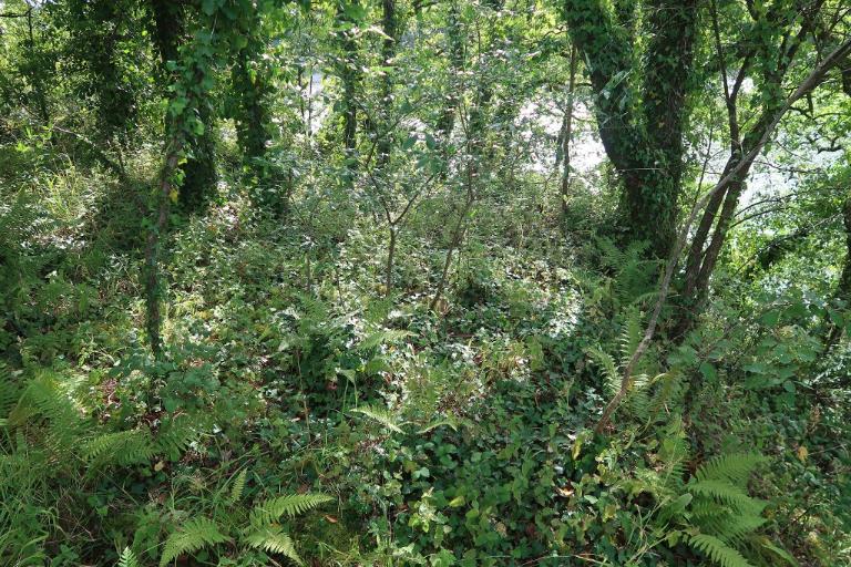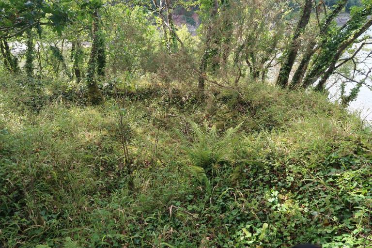 Du côté du Trieux, la partie sud-ouest se distingue par sa pente importante. Sa forme quadrangulaire, bien différente des deux autres enceintes qui se limitent aux contours du rocher, laisse penser qu’il s’agit d’une extension postérieure à la première enceinte. Erwan Chartier fait remarquer que les six pièces d’artillerie en place dans le château en 1399 devait servir à contrôler et dissuader le passage des navires. Cette plate-forme - pour une batterie d’artillerie ? - pourrait peut-être coïncider avec cette fonction défensive.