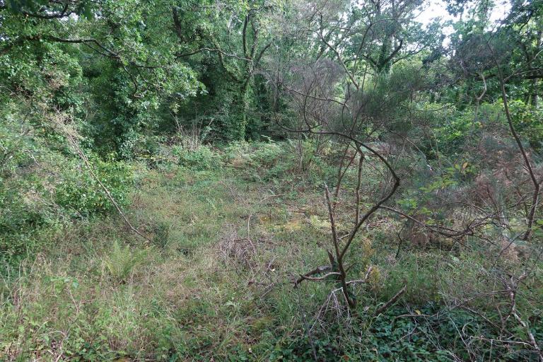 La seconde enceinte, mesurant moins de moins de 1 000 m2 de superficie, occupe l’extrémité nord du site sous la forme d’un éperon orienté vers l’aval du Trieux. L’enceinte est implantée directement sur le rocher. La visite sur site confirme la présence de vestiges. Les monticules de terre principalement situés au sud du périmètre recouvrent encore des vestiges. Des murs sont toujours observables vers le milieu de front sud. Ils délimitent un espace quadrangulaire ouvert vers la première enceinte. En regard avec le modèle numérique de terrain, il pourrait s’agir de la porte d’accès - desservie par un pont - reliant les deux enceintes.