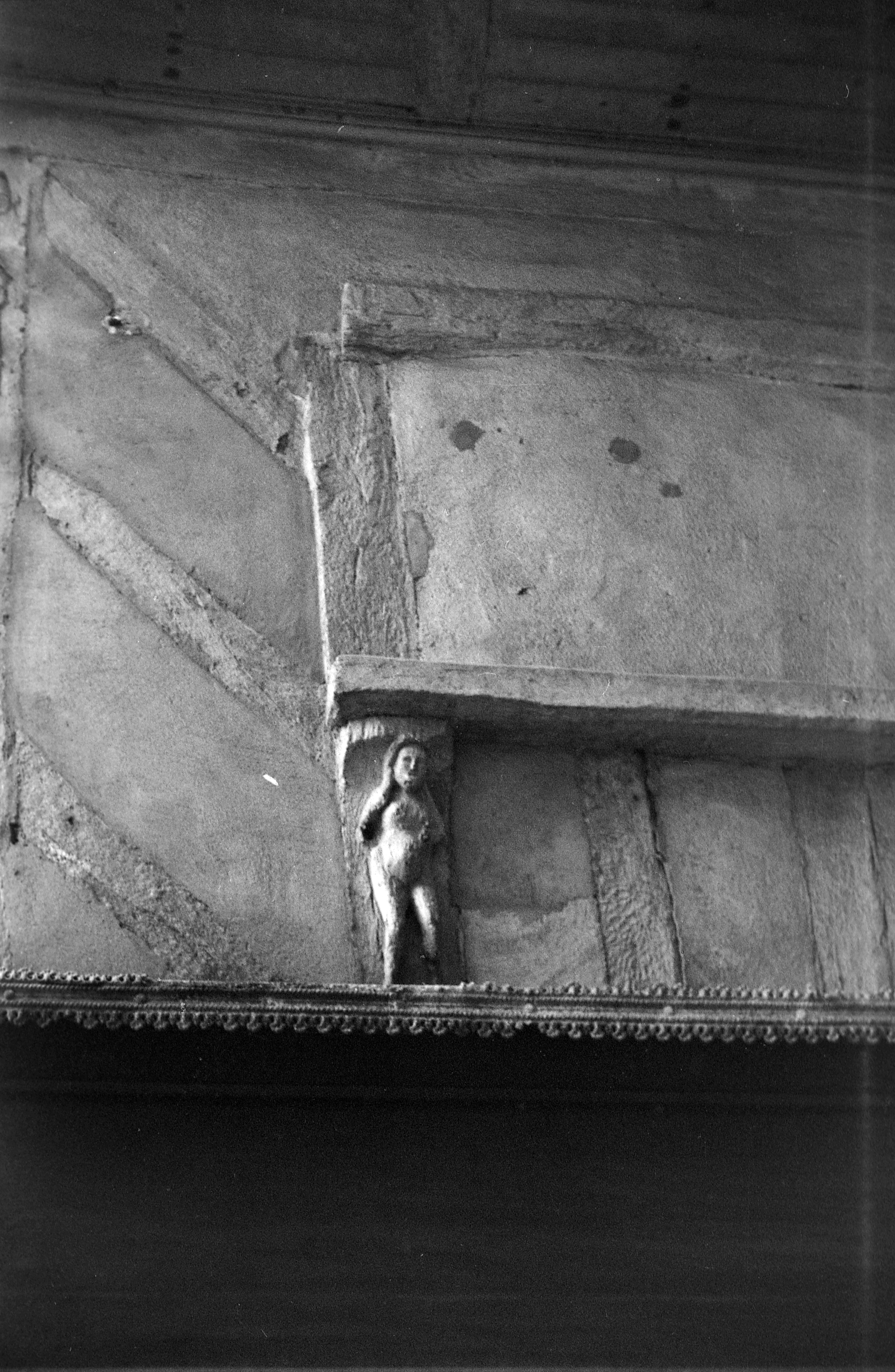 Typologiesmaison d'angle. Mur gouttereau sur rue/en profondeur. Plan allongé. Encorbellement sur solives. Deux pièces par étage. Cheminée sur gouttereau