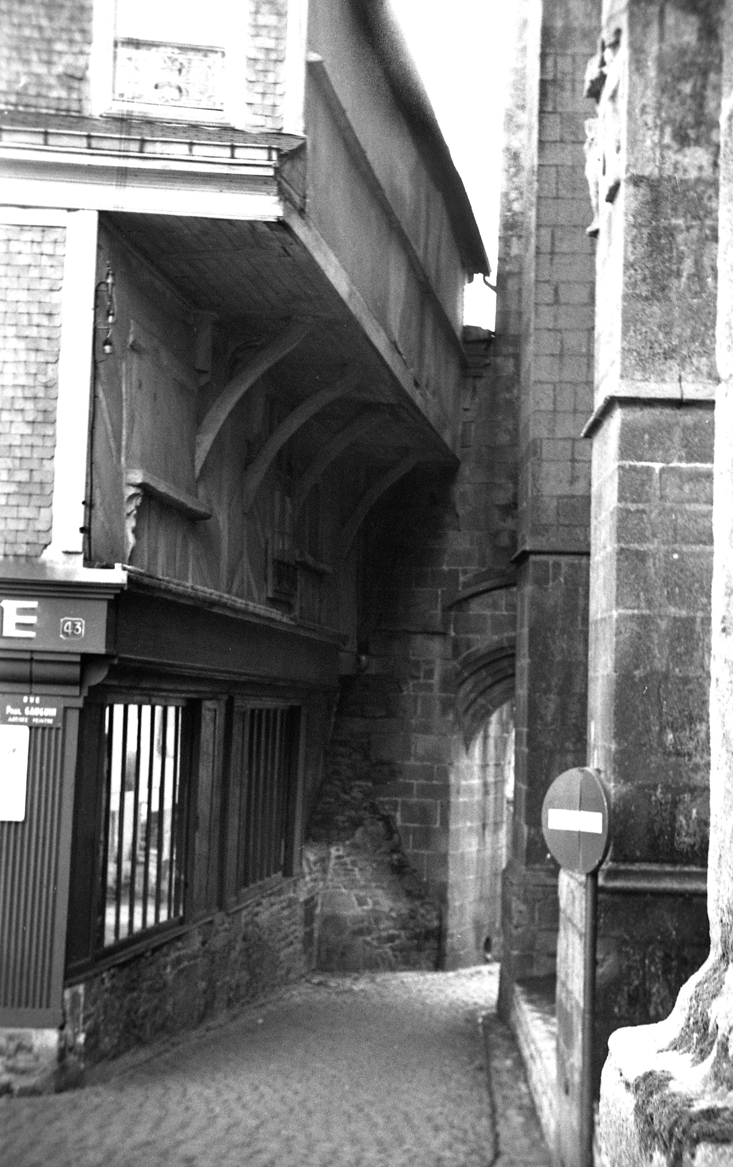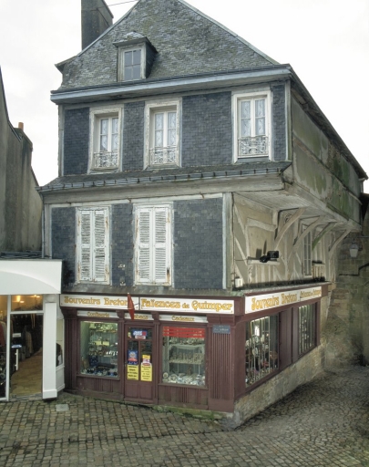Bien qu´altéré par plusieurs remaniements et fragilisé par le mauvais état de conservation de ses élévations en pan de bois, l´édifice demeure, par sa silhouette et son décor sculpté, une réalisation notable de l´habitat urbain de Quimperlé. Bâti dans l´angle de l´ancienne place au Soleil (plus tard place Saint-Michel), il avoisine un large contrefort de l´église Notre-Dame percé d´un passage qui lie la haute à la basse ville. Les trois éléments sculptés figurant sur les poteaux du premier étage - femme ou sirène, saint Michel et ange présentant les armoiries ducales - plaident en faveur d´une construction de la première moitié du 15e siècle, peut-être en rapport avec le travail des charpentiers et sculpteurs à l´origine des sablières de la nef de l´église Notre-Dame.