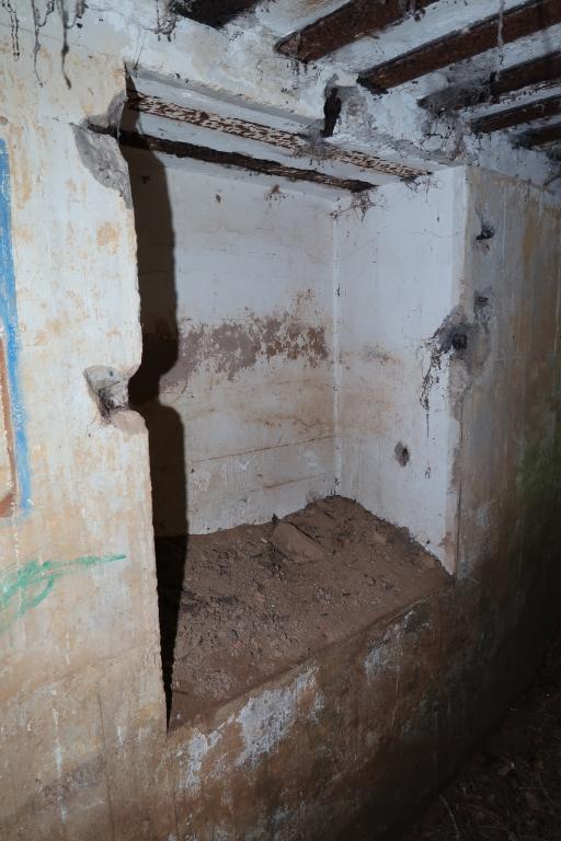 Le bunker est conforme au type VF 1a (mesuré) : dalle de couverture et murs périphériques de 1 m d’épaisseur ; couloir d'accès de 6 m de longueur pour 1,2 m de largeur et 2 m de hauteur ; niches murales dans le couloir : à l'Est, à 0,67 m de hauteur, 1,5 m (l) x 1,3 m (la) x 0,5 (profondeur) et à l'Ouest à 0,76 m de hauteur, 1 m (l) x 1,2 m (la) x 0,5 m (profondeur) ; pièce de vie - chambre de troupe mesurant 4 m de longueur par 3 m de largeur et 2,1 m de hauteur ; sur le mur Est, sortie de secours ; à l’extérieur, puits en parpaing de béton plein.