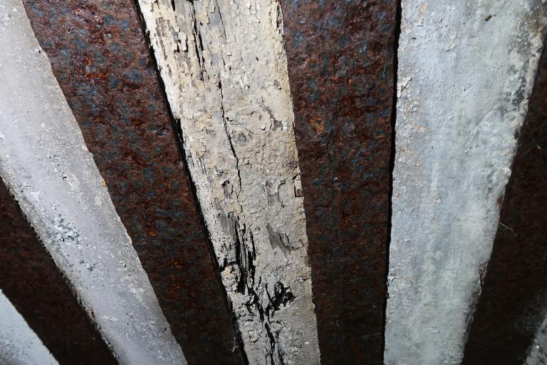 Murs intérieurs peints au chiffon en ocre jaune (imitation d'une tapisserie).