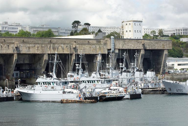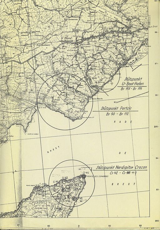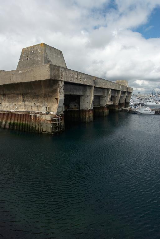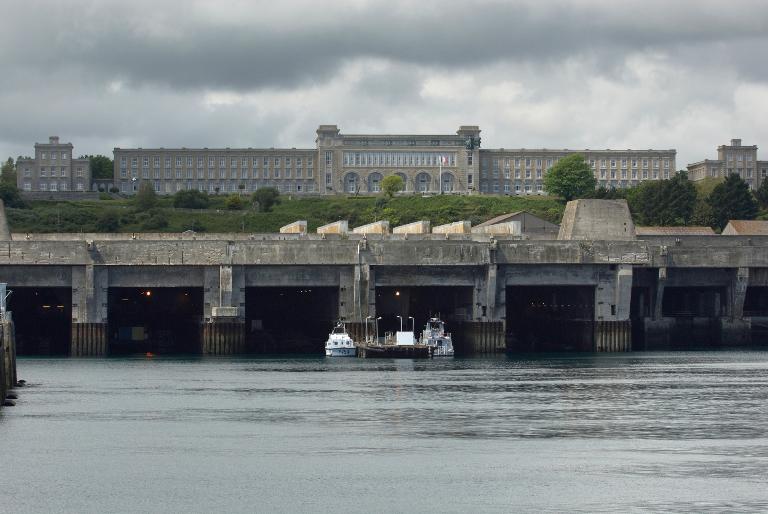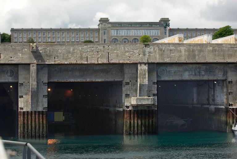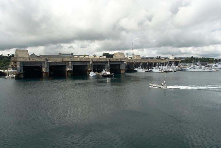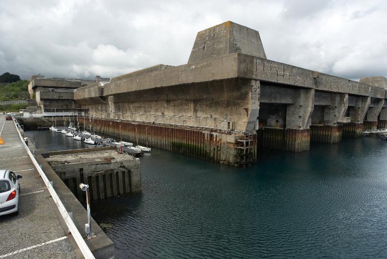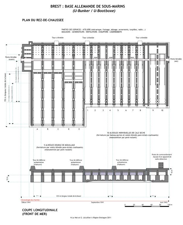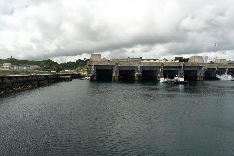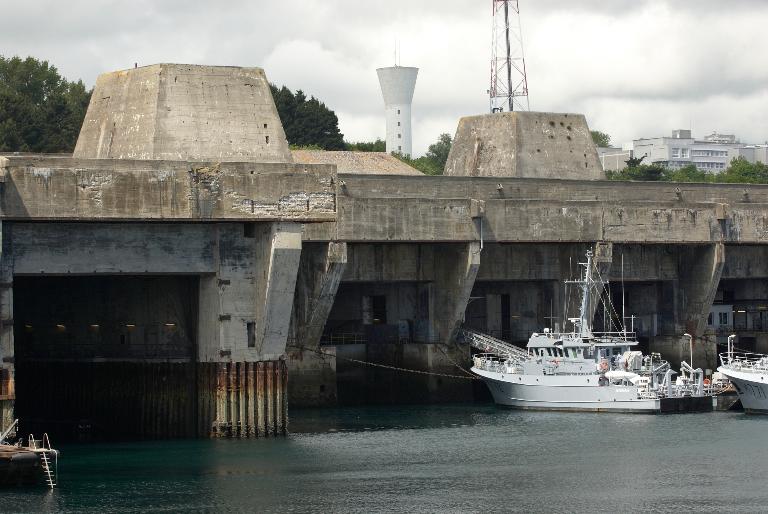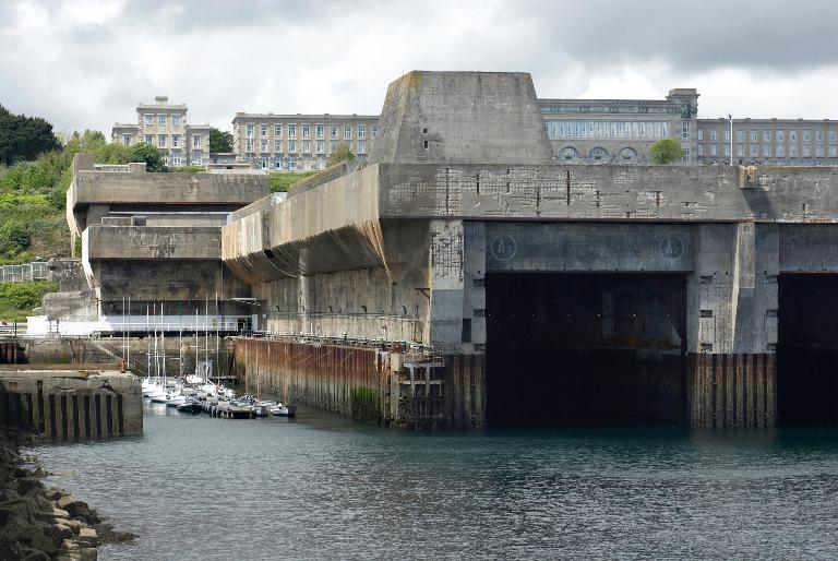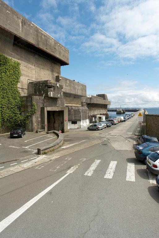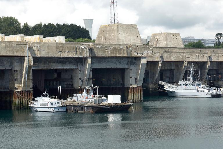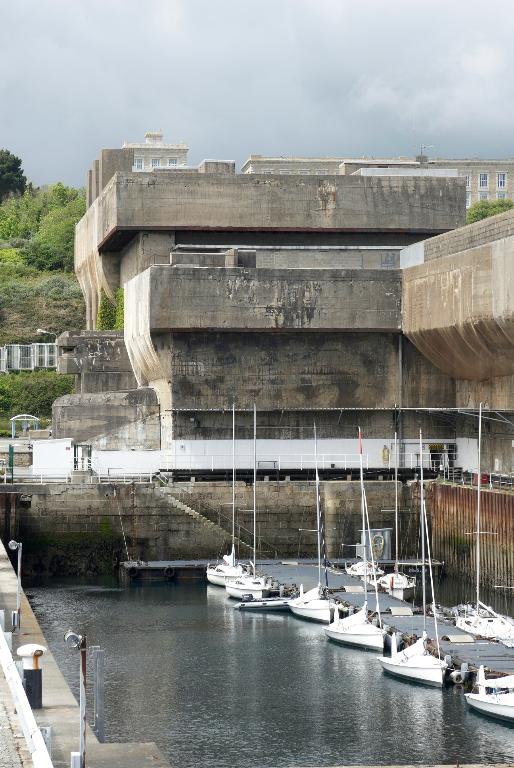 La base de Brest abritait la 1re flottille (Unterseebootsflottille Saltzwedel puis Weddigen, basée à Kiel avant juin 1941) et la 9e flottille (der lachende Schwertfisch ou « espadon rieur ») mais, dès août 1940, arrive dans l’arsenal de Brest l’U65. Ces deux flottilles de combat ont reçu au total 224 unités durant leur service. Les travaux de la base de sous-marins débutèrent au début de l’année 1941 et s’achevèrent en juin 1942 soit, en moyenne, 33 jours par alvéole. L’entreprise allemande en charge des travaux est la maison berlinoise Julius Berger qui fit travailler en sous-traitance l’entreprise française Campenon-Bernard.