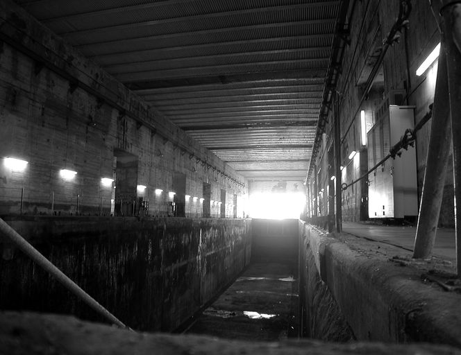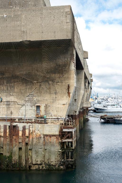 En attendant, la maladie du béton – le phénomène de carbonatation, les fers à béton noyés trop près de la surface qui, avec la corrosion dont ils sont atteints, font exploser le béton – accélère la dégradation de l’ancienne base allemande. La question de son avenir se pose plus que jamais. Une couverture photographique complète de la base de Brest reste toujours à faire".