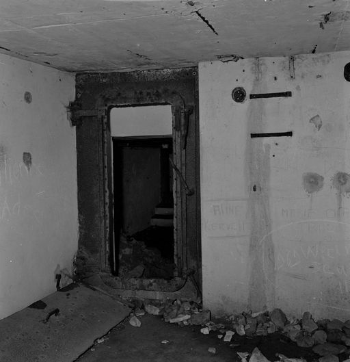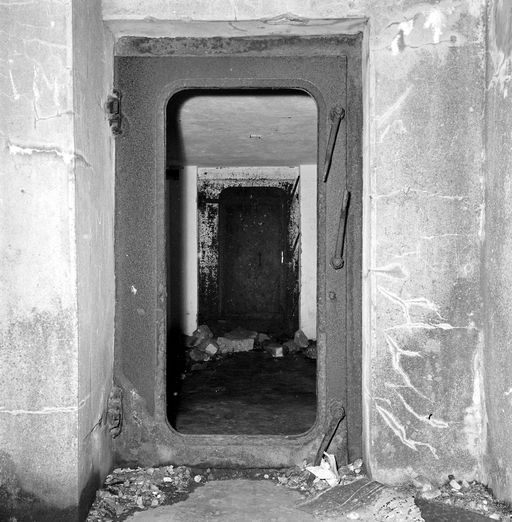 Les locaux 3, 4, 5, 6, 7 communiquent par des portes étanches type Marine (verrous à serrage progressif sur rampe) subsistant en partie.