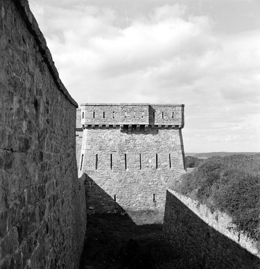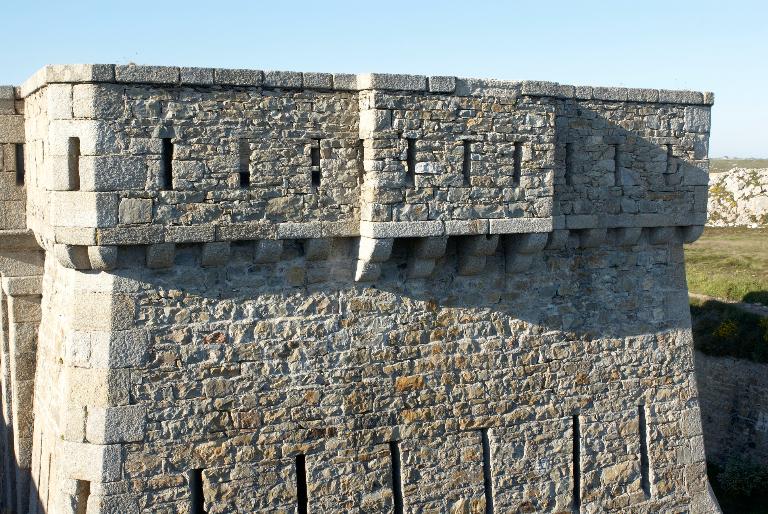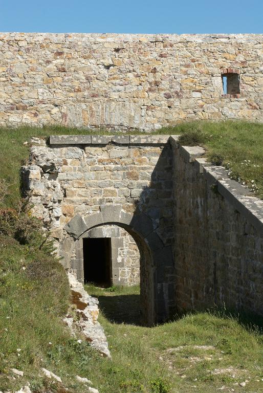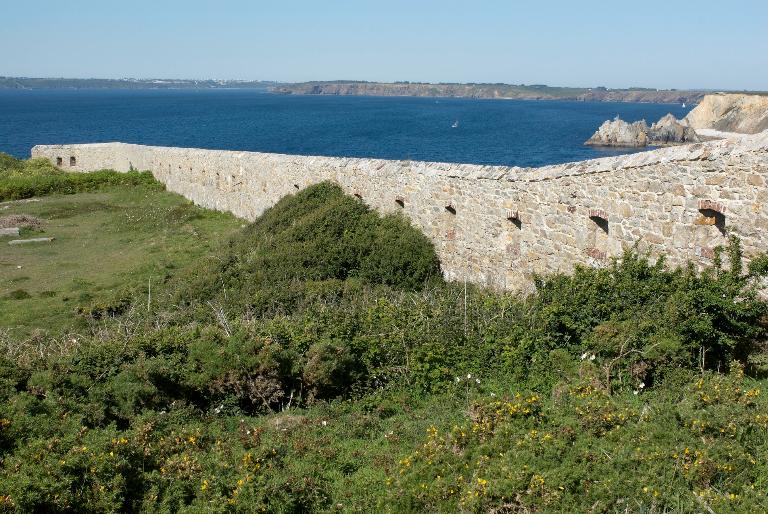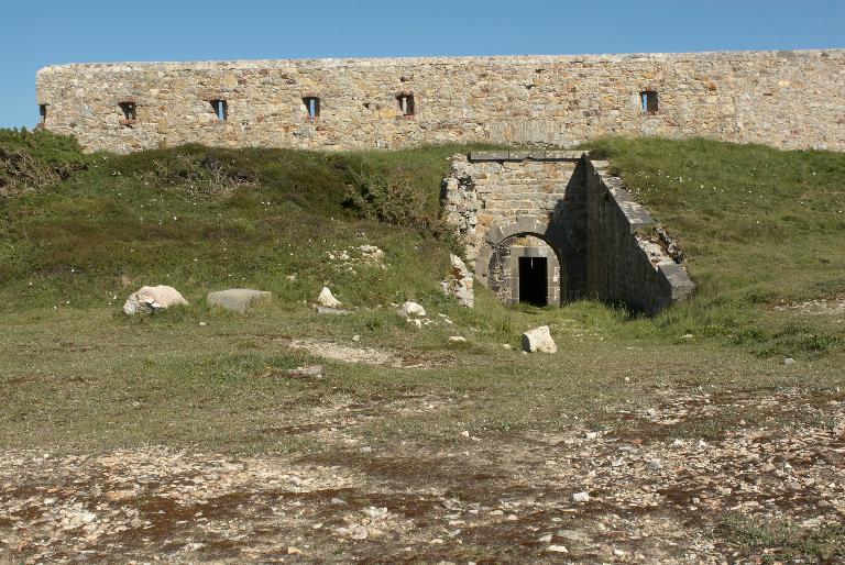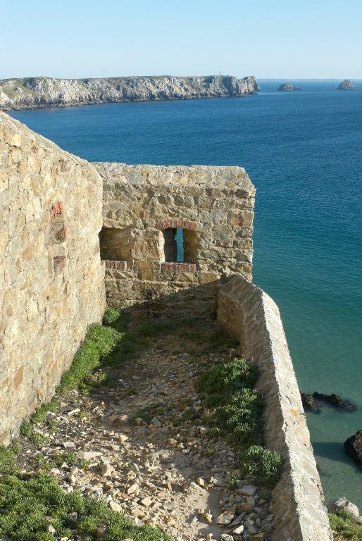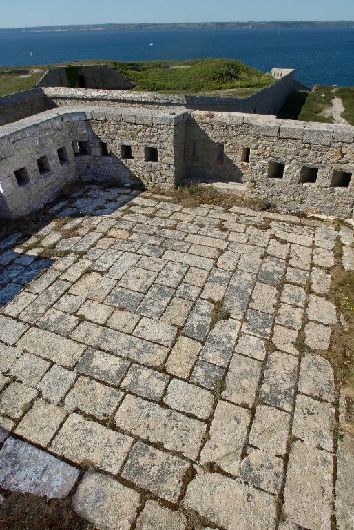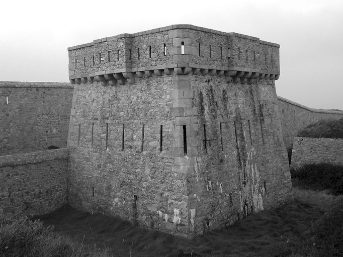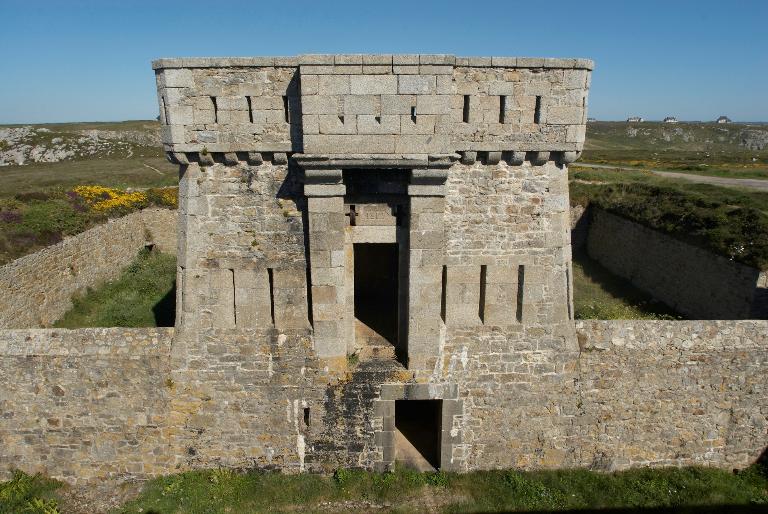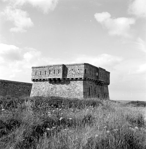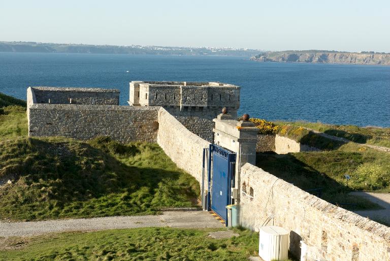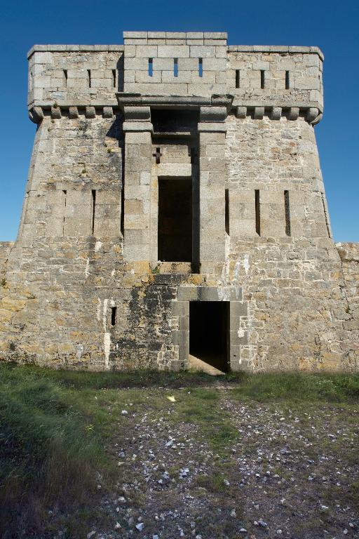 "Conforme en tout point au plan-type n° 3, c´est aujourd´hui l´édifice le mieux conservé de cette famille architecturale en rade de Brest. La seule modification a consisté en l´ajout d´une entrée au premier niveau en remplacement de l´accès initial par passerelle et pont-levis. La mise en oeuvre de l´ouvrage et le traitement particulièrement soigné de la façade principale, orientée à l´ouest, sont remarquables. Si la maçonnerie est réalisée en moellons de granite, l´entrée monumentale encadrée de pilastres, le linteau de porte à chronogramme 1812, les encadrements des créneaux de tir et une bretèche (sur la façade principale), le dallage de la plate-forme (la corniche en "bandeau" rappelant le cordon de la fortification classique), les modillons ou corbeaux, les chanfreins extérieurs, les chaperons des angles, la tablette du parapet, les arêtes des voûtes, les encadrements de portes, les marches d´escalier, sont traités en pierre de taille de granite gris. Les voûtes sont réalisées en brique.