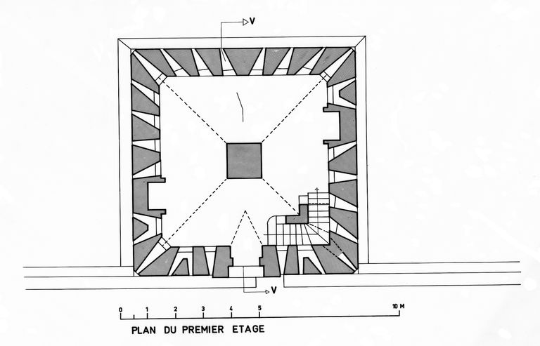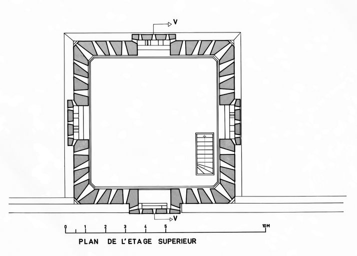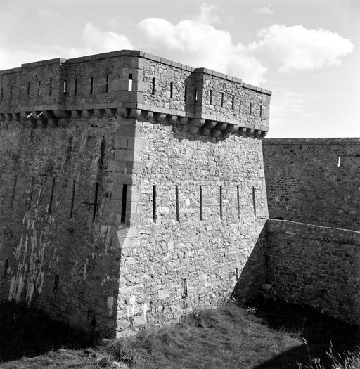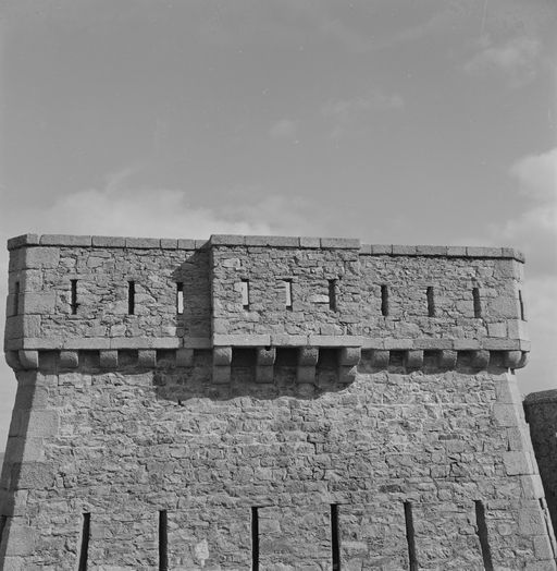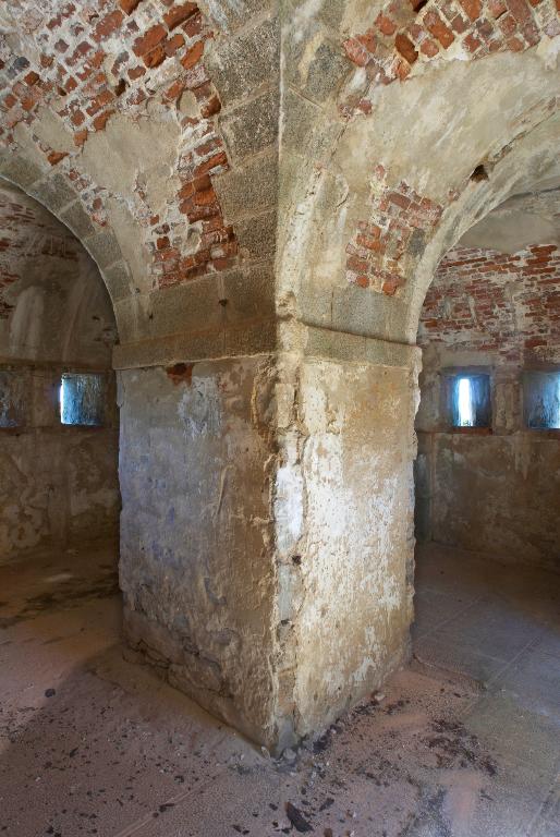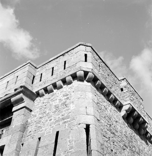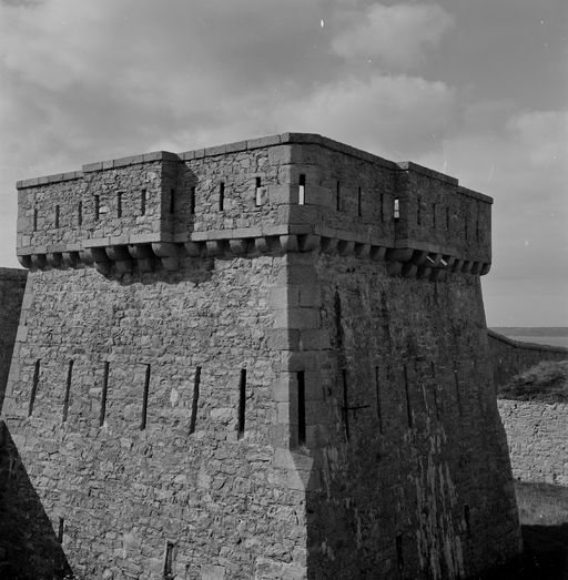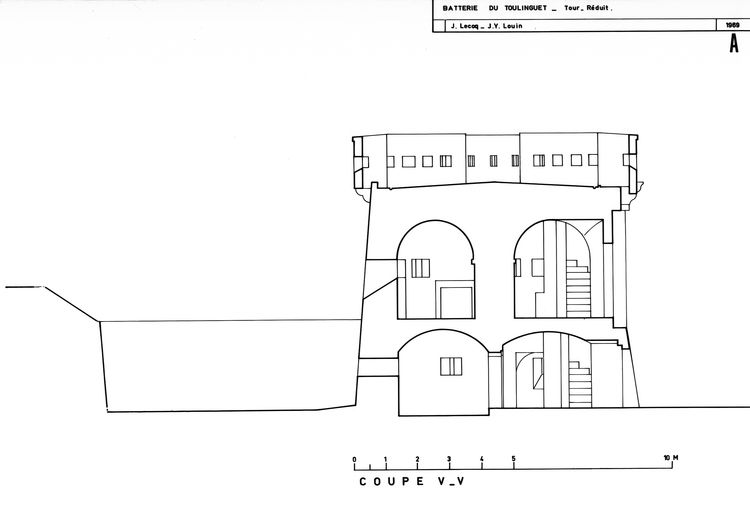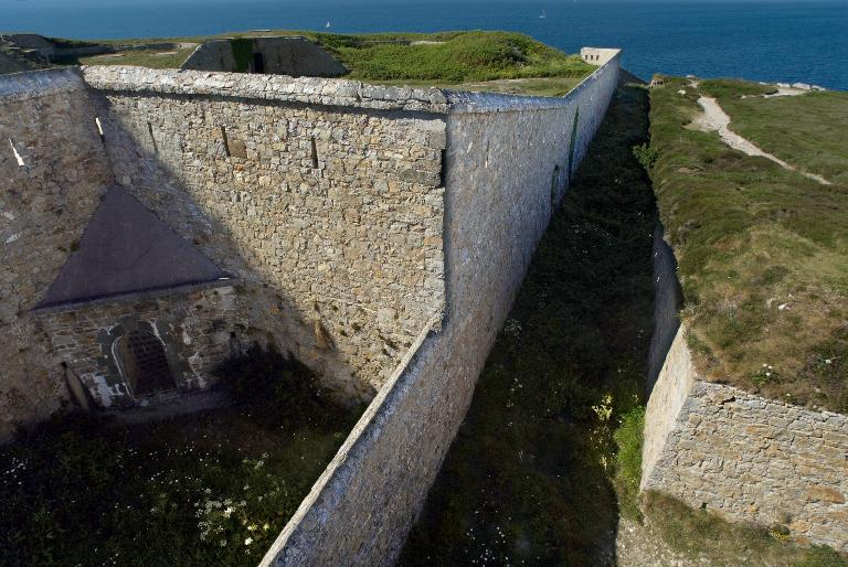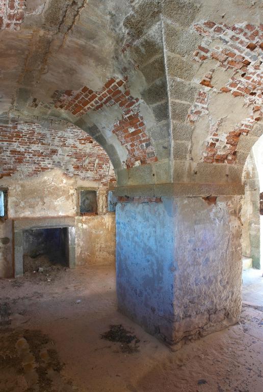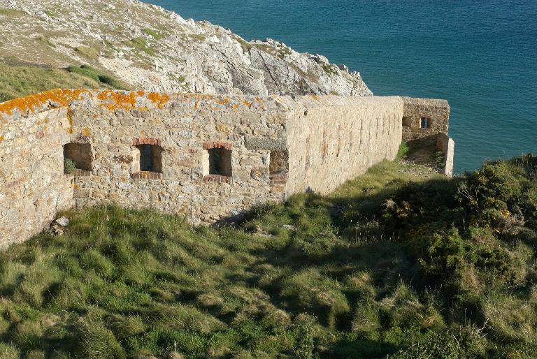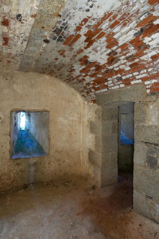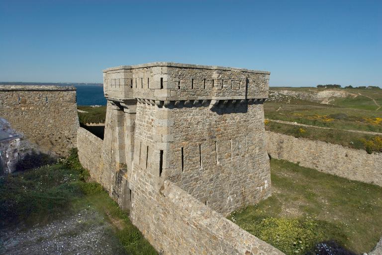 "Conforme en tout point au plan-type n° 3, c´est aujourd´hui l´édifice le mieux conservé de cette famille architecturale en rade de Brest. La seule modification a consisté en l´ajout d´une entrée au premier niveau en remplacement de l´accès initial par passerelle et pont-levis. La mise en oeuvre de l´ouvrage et le traitement particulièrement soigné de la façade principale, orientée à l´ouest, sont remarquables. Si la maçonnerie est réalisée en moellons de granite, l´entrée monumentale encadrée de pilastres, le linteau de porte à chronogramme 1812, les encadrements des créneaux de tir et une bretèche (sur la façade principale), le dallage de la plate-forme (la corniche en "bandeau" rappelant le cordon de la fortification classique), les modillons ou corbeaux, les chanfreins extérieurs, les chaperons des angles, la tablette du parapet, les arêtes des voûtes, les encadrements de portes, les marches d´escalier, sont traités en pierre de taille de granite gris. Les voûtes sont réalisées en brique.
