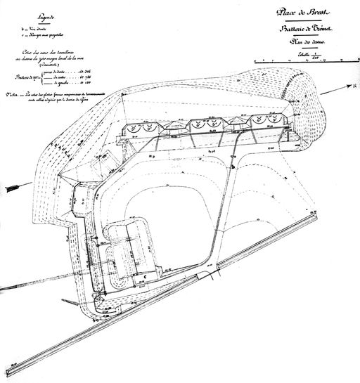 - Carte particulière des côtes de Bretagne contenant les environs de la rade de Brest avec une démonstration de toutes les batteries et retranchements depuis Morgat jusqu'aux Minoux par Gouyon Miniac, garde du Pavillon, 1717
