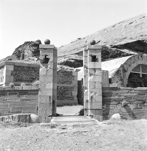 Le petit fossé protégeant l'entrée, s'ouvrant à chaque extrémité sur les rochers, pouvait constituer un élément favorisant l'escalade : de ce fait on l'a fermé, à chaque bout, par un batardeau avec chaperon à deux pentes, lui-même coupé par une tourelle dite "dame".