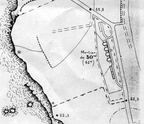Situé en bordure et à l'ouest de la route militaire, en tranchée, à mi-chemin entre la batterie de 24 cm et la batterie de 32 cm.