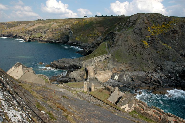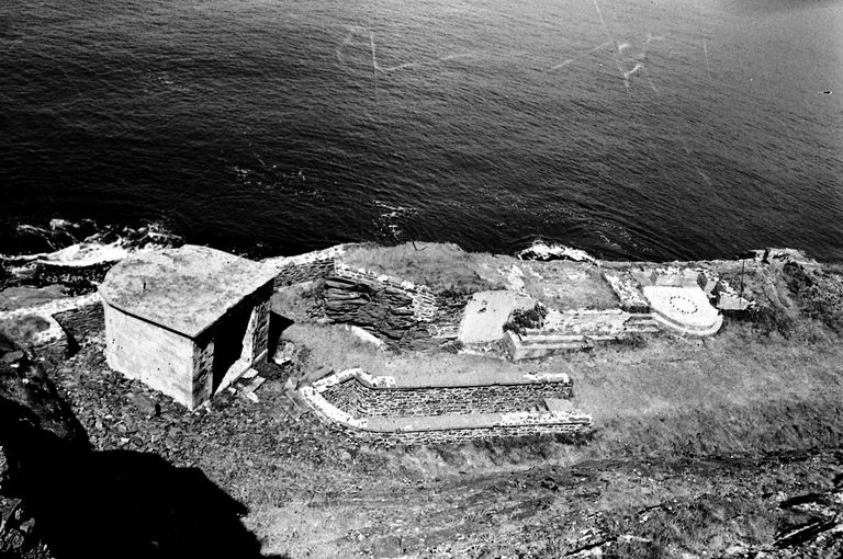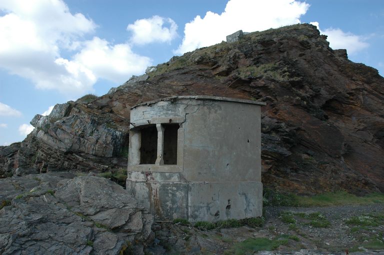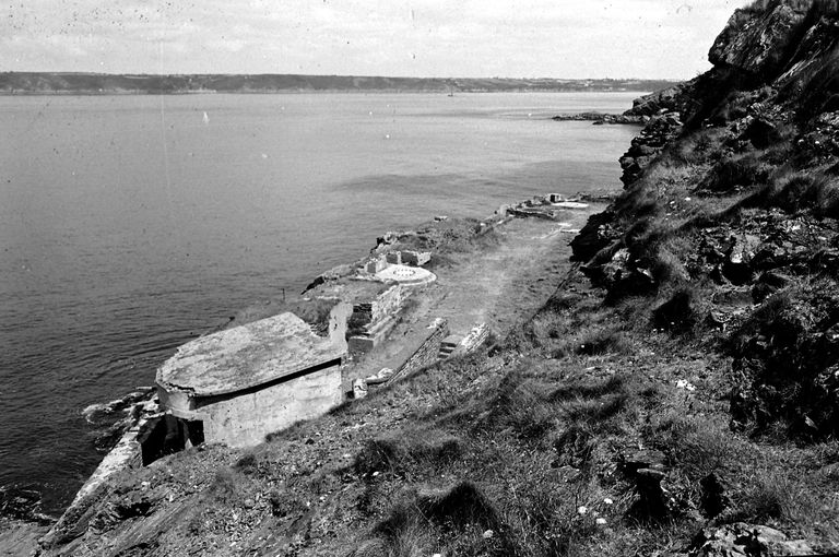 Batteries hautes groupées au sommet des falaises, de part et d'autre de la pointe.