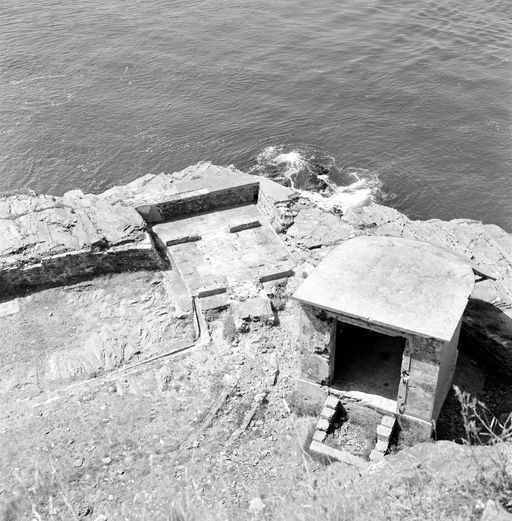 Cuve creusée dans le rocher, au sommet de l'extrémité sud de l'arête centrale de l'ilot reliée à la caserne par escalie à ciel ouvert taillé dans le roc.