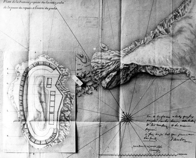 On trouve entre autres un projet de Traverse daté du 27 janvier 1696 relatif à une batterie à construire sur l'ilôt, et visé par Vauban (Archives de l'Inspection du Génie. Brest. Carton n° 1 pièce 33 p).