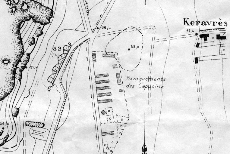 - Au sud, à 500 mètres environ de la pointe la batterie de mortiers des Capucins et ses annexes.