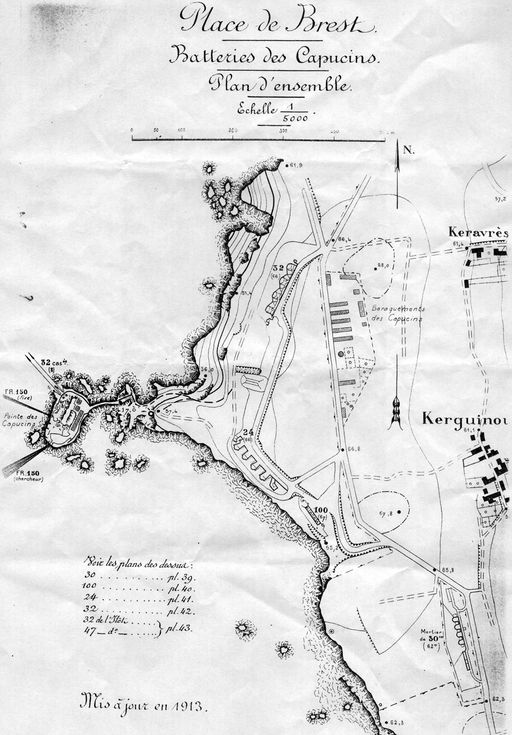 - A la pointe même : les batteries des Capucins (Batterie de 100 mm, de 24 cm et de 32 cm) avec leurs annexes (magasins, postes de télémétrie, etc....)