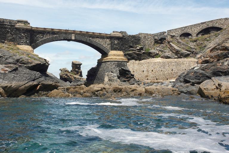 Très bel ouvrage à arche unique, en arc surbaissé bandé entre deux massifs de culée. Il relie l'extrémité de la pointe des Capucins à la plate-forme extérieure d'entrée de l'ilot.