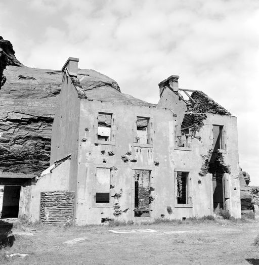 Les refends portaient une toiture en ardoise à quatre pentes aujourd'hui disparue.