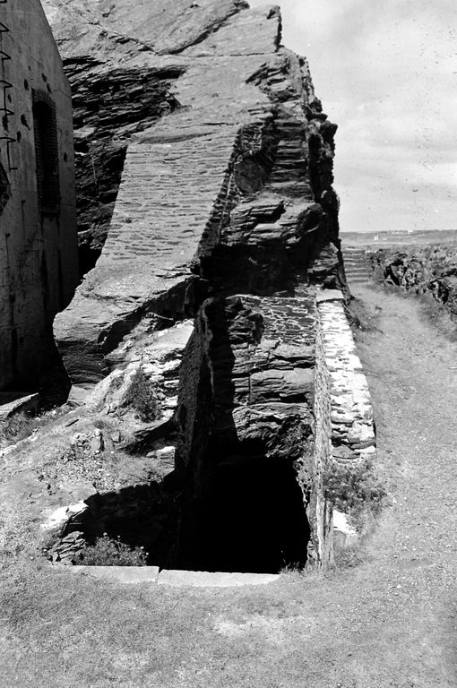 Une galerie d'égoût évacue les eaux des locaux souterrains vers la falaise.