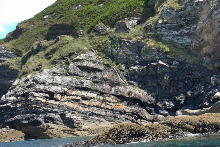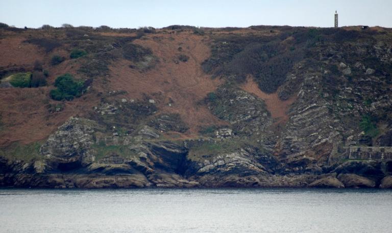 Composition géologique du site : plateau et falaise en schistes et quartzite brun-foncé de Plougastel.