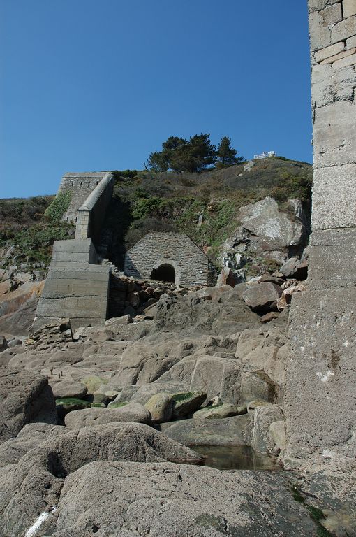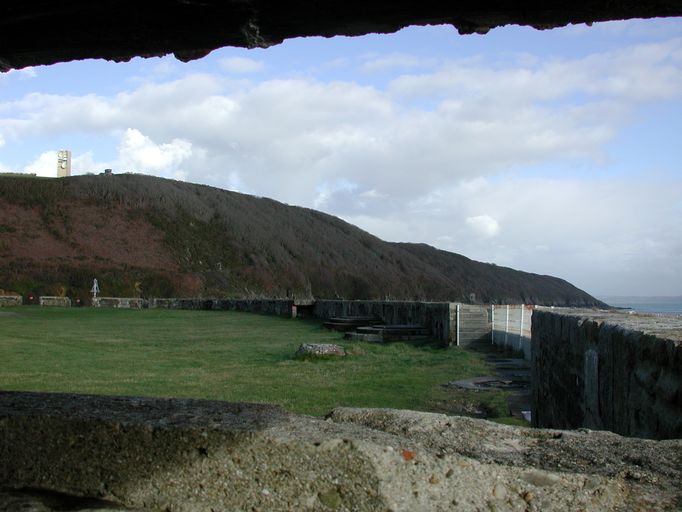 Plus haut sur la falaise, à l’est du fort vers le hameau de Quillihouarn, six canons de 100 mm sont implantés et servent de batterie annexe ; les sous-sellettes d’affût sont toujours en place.