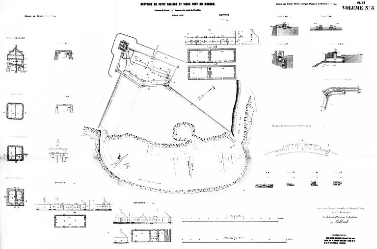 Service Historique de la Défense de Brest : Génie E : 19e siècle. Plans terriers, levers des batteries de côte et plans d´affermage concernant les bâtiments militaires de la place du Conquet. 98 pièces. E 3