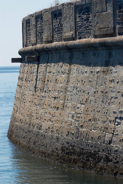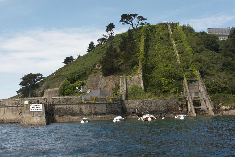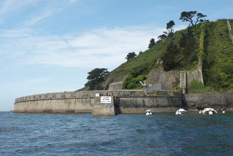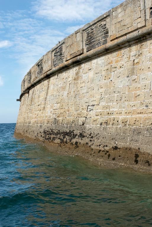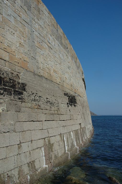 La batterie basse, en dépit de l’arasement de nombreux bâtiments après la Seconde Guerre mondiale, est l’élément le plus remarquable de cet ensemble fortifié. La maçonnerie de l’escarpe en pierres de taille de granite montre un certain nombre de "boules" ou "pustules" en parement : éléments de décor, marques de tâcheron destinées à payer les ouvriers à la tâche ou marques d’assemblage des pierres cramponnées (ou "agrafées") au fer comme semblent le suggérer des pierres basculées à la mer ?