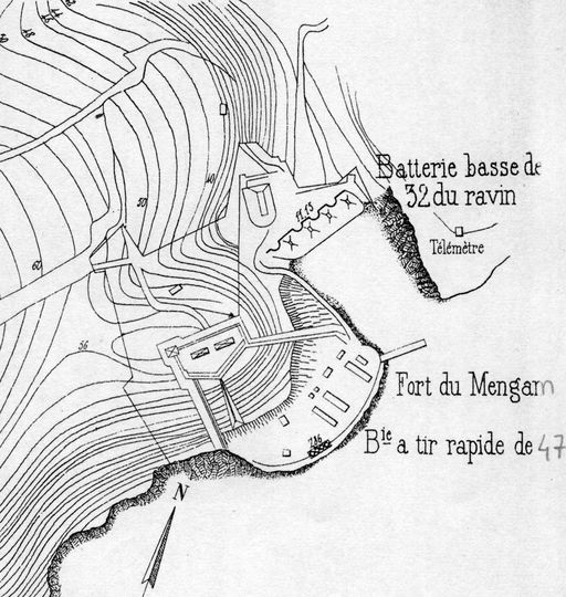 En 1878, une jetée est construite pour permettre le stationnement de canots porte-torpilles dans la petite anse du Mengant. Une batterie rasante de 32 cm est également construite au fond de l’anse dans le ravin du Mengant en 1885-1886.