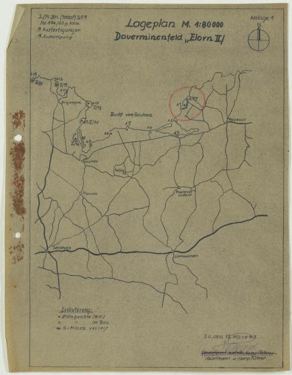 Selon les plans allemands de minage, les ensembles fortifiés numérotés "A 1", "A 5", "A 6" et "A 8" sont achevés au 12 mars 1943 ; les autres ensembles fortifiés - dont celui numéroté "A 4" - sont encore en construction à cette date (im Bau).