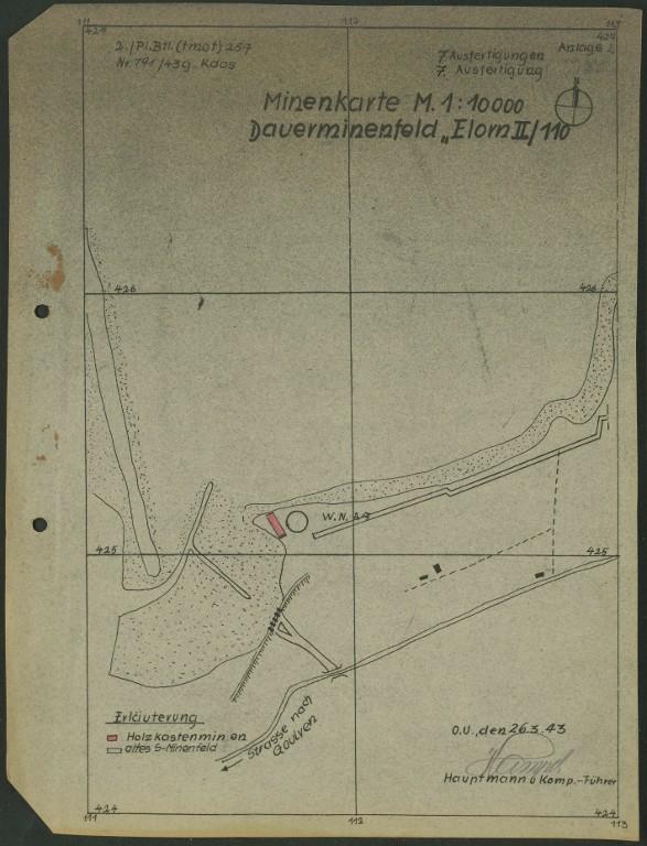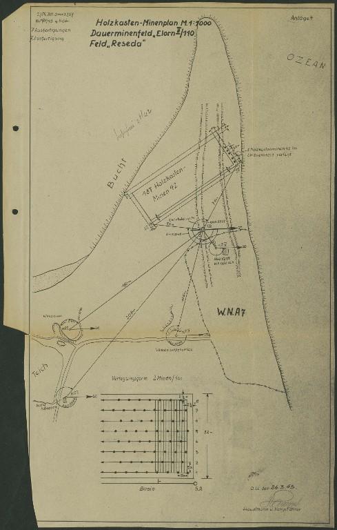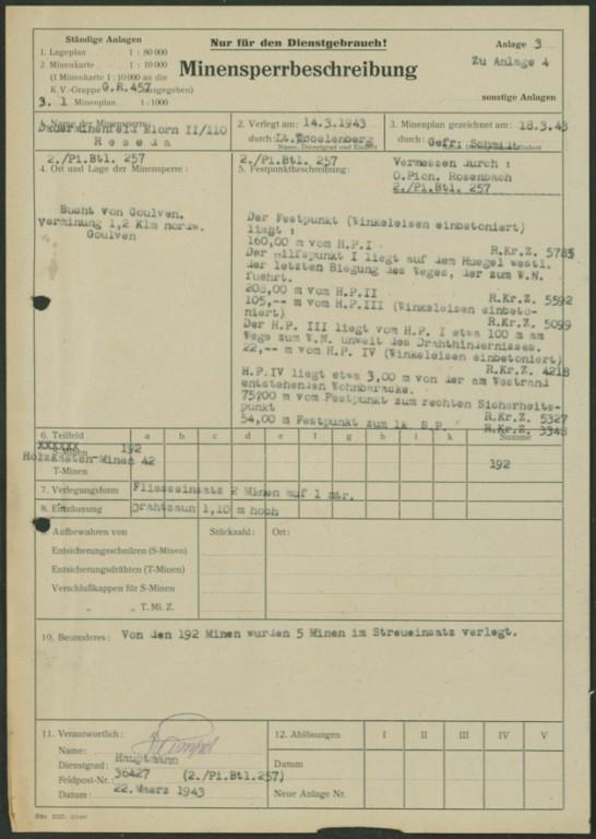 Selon les plans allemands de minage, les ensembles fortifiés numérotés "A 1", "A 5", "A 6" et "A 8" sont achevés au 12 mars 1943 ; les autres ensembles fortifiés comme celui numéroté "A 7" sont encore en construction à cette date (im Bau).