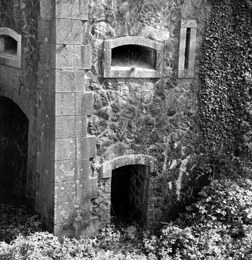 Deux magasins à poudre, dont l’un au nord en béton armé (1902), permettaient de conserver les munitions. La mise en œuvre du fort, classique pour ce type d’ouvrage, fait appel à un appareillage irrégulier de moellons de granite et de grès. Seuls les chaînages d’angle harpés, piédroits, appuis, linteaux et tablettes, en pierre de taille de granite, soulignent les détails architecturaux.