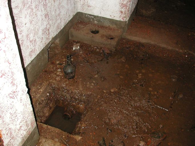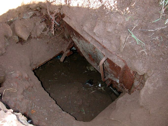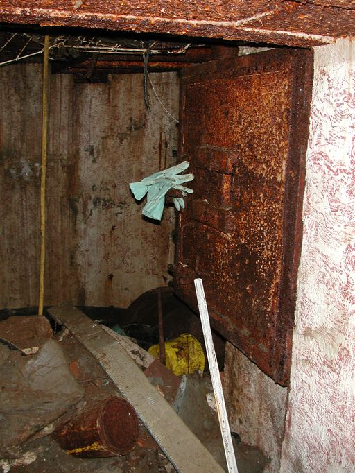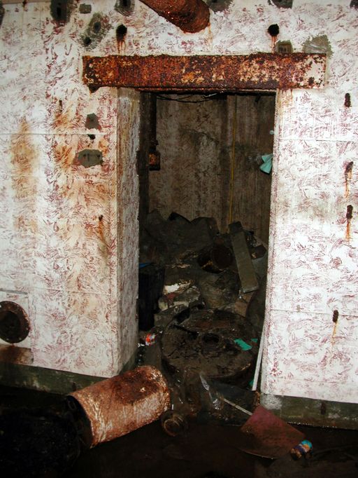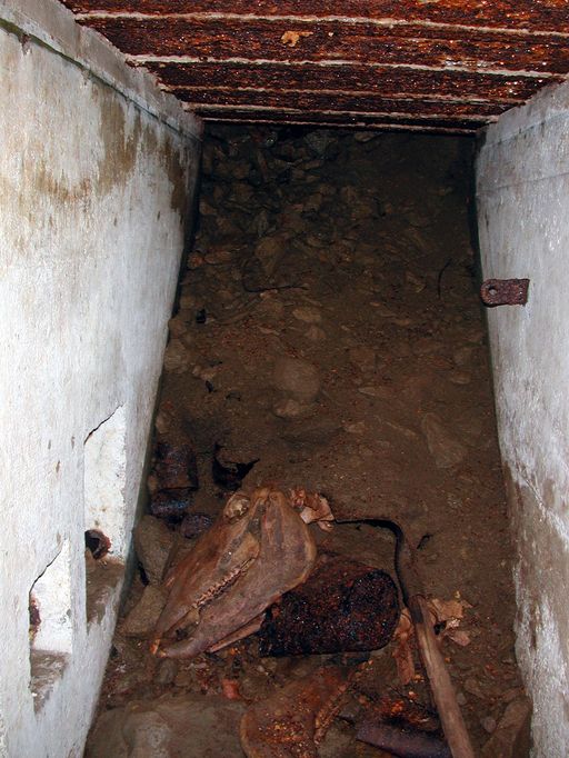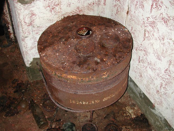 L'entrée principale était remblayée en 2003 : l'accès au bunker s'est fait par le puits - encombré de détritus - de la cloche blindée.