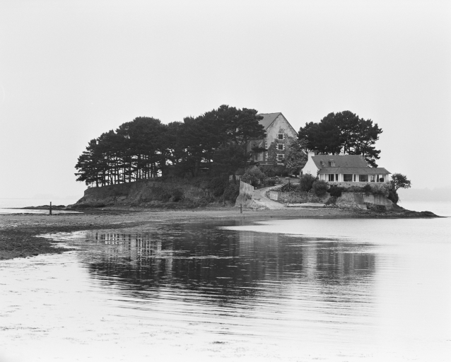 Situé en face de Landévennec, au confluent de la rivière du Faou et de l´Aulne, cet îlot d´environ 4000 m2 occupe un site naturel et stratégique exceptionnel. L´installation de la poudrerie royale de Pont-de-Buis à la fin du 17e siècle conduit à la construction de cette poudrière, grand magasin à usage militaire comportant trois niveaux étayés de quatre contreforts de chaque côté. Il était destiné à sécher, à stocker et à protéger les poudres et explosifs avant leur transport vers Brest et les autres ports français. Les manoeuvres par chalands se faisaient à marée haute et aujourd´hui encore, un canon, debout, fixé au sol de la grève inondable, témoigne du lieu d´amarrage des bateaux. Pour certaines baies, on utilise le tuffeau, un matériau importé. Des photographies anciennes montrent le lieu avant la plantation d´arbres près des abords. C´est un des rares édifices de ce type conservé en Bretagne". Maison, îlot accessible à marée basse. (Douard Christel ; Toscer Catherine, 1995).