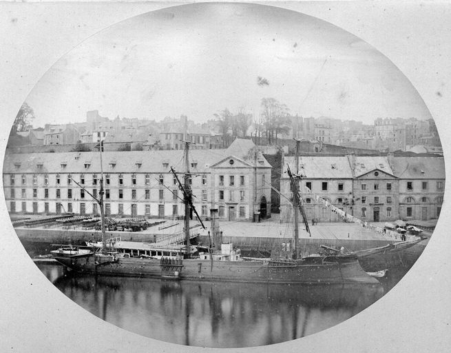 L’arsenal de Brest, créé en 1631 par Richelieu, est devenu au 19e siècle un gigantesque complexe militaro-industriel niché au cœur de la ville, le long des rives de la Penfeld. À Brest, la véritable richesse est la construction navale due au savoir-faire des ouvriers et des maître-charpentiers. La mise en œuvre adéquate des processus d’approvisionnement - notamment en poudre à canon, bois, fer, chanvre (pour la corderie), pierres de taille et chaux (pour les fortifications) - était aussi un apport d’importance. L’histoire des sciences et techniques dans le domaine maritime et militaire, la marine étant bel et bien une arme moderne, se confond avec l’histoire de la ville et le développement de l’arsenal. Pour Seignelay, fils aîné de Jean-Baptiste Colbert et futur secrétaire d’État à la Marine, l’arsenal de Brest c’est avant tout "les grands et larges quais, la régularité des bâtiments construits dans toute cette étendue et le nombre de cinquante gros vaisseaux de guerre". Au 18e siècle, l’architecture des bâtiments de l’arsenal de Choquet de Lindu n’est-elle pas avant tout française ? Pour Émile Souvestre dans son Voyage dans le Finistère, de 1835, "Ce qui vous saisit à l’aspect de cette grande ligne de bâtiments, c’est une expression de force et de puissance".