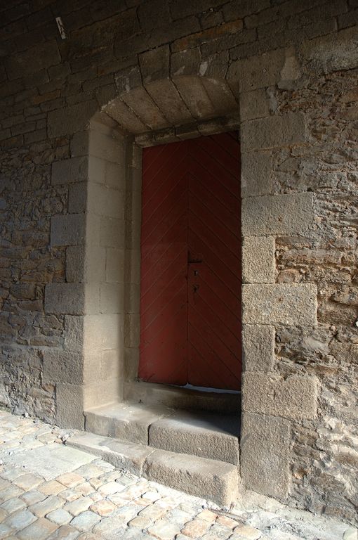 - au rez-de-chaussée : des magasins voûtés éclairés par des ouvertures traversantes et trois portes-passages. Le passage central permettait d’accéder à l’enclos de la Madeleine ; celui du nord, au bas de la rue de Saint-Malo (passage réduit puis muré) et celui du sud via un escalier, à la cour de la prison de Pontaniou (passage muré). A l’extérieur, à ce niveau côté Penfeld, chaussée - terrasse principale pavée desservant les trois portes-passages fermées par des grilles. Côté ouest, le terrain de la Madeleine. A l’extrémité nord de la terrasse, l’escalier des Capucins ; à l’extrémité sud, la rampe plaquée à la levée descendant du plateau de Pontaniou.