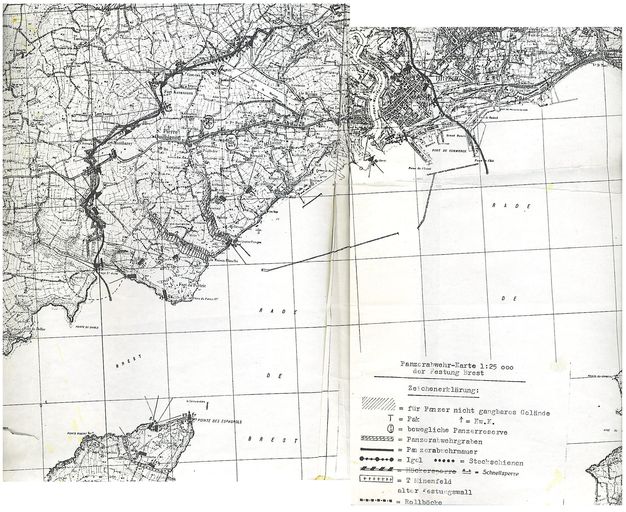 Rapport Pinczon du Sel (connu en Bretagne sous le nom de rapport Seyeux - Delpeuc´h). Livre IV. Le Mur de l'atlantique : la côte de la Manche et de l´Atlantique du Mont Saint-Michel à Laïta", 1947-1948. Plan.