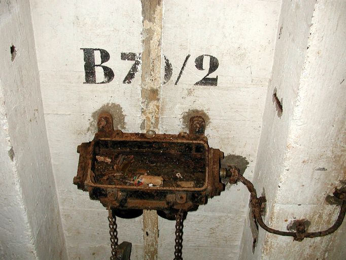 En-dessous de la numérotation "B 70/2" peinte en noir se trouve le boîtier de connexion téléphonique (en place en 2003 ; disparu en 2005).