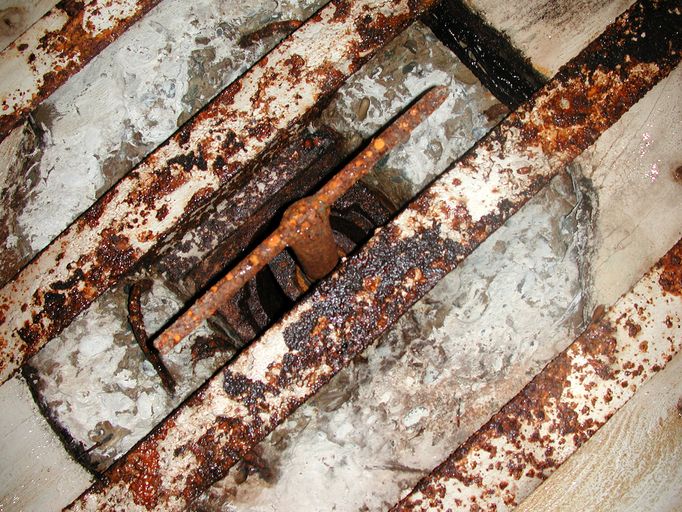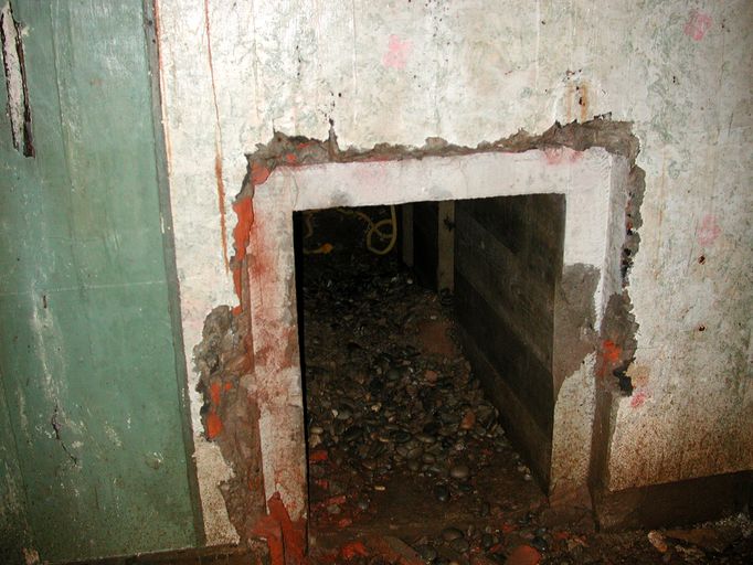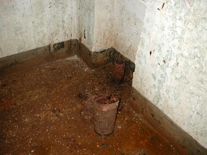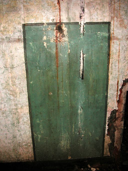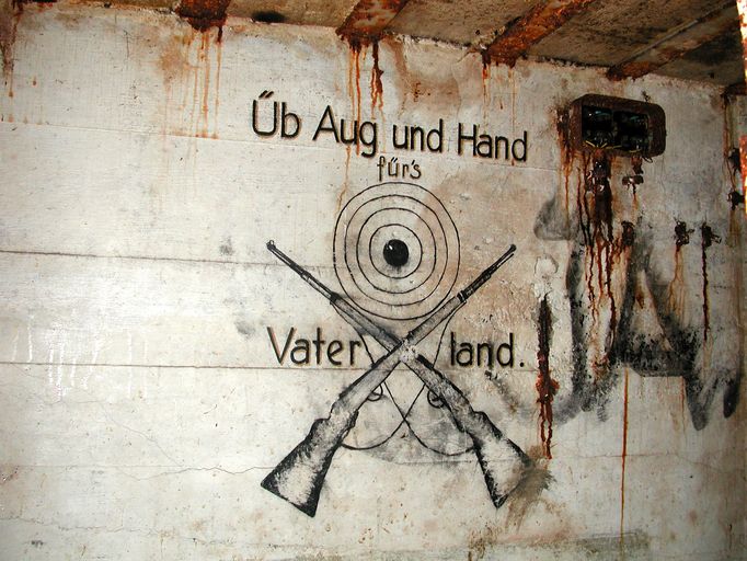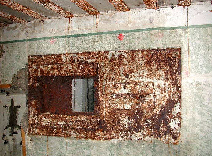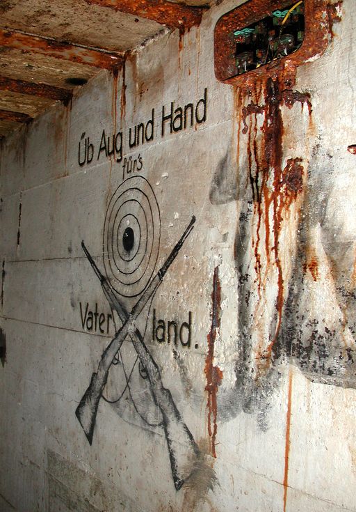 Au-dessus de la porte d'entrée du sas : dans un cartouche, maxime peinte en trait de couleur noire (en partie effacée) : "Ein Volk das nicht zu Kämpfen weiss / Hat nicht das Recht zu leben" que l'on peut traduire par "Un peuple qui ne sait pas se battre, n'a pas le droit de vivre." Il s'agit d'une maxime de propagande nazie.