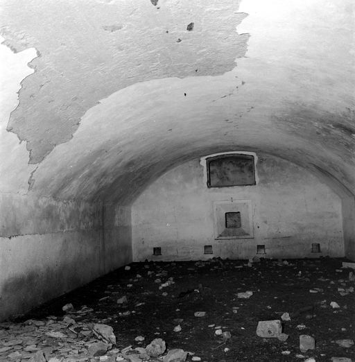 - Un passage couvert sud-nord, voûté en plein cintre, dont l' extrémité nord a été écrasée par une bombe d'avion. Ce passage couvert dessert le magasin à poudre.
