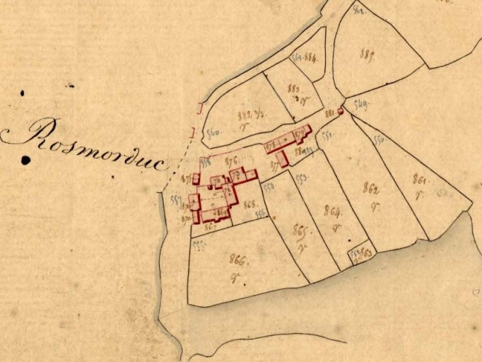 Les terres de Rosmorduc appartiennent à la famille éponyme depuis le 13e siècle, le manoir primitif ayant été un édifice fortifié protégé par une enceinte trapézoïdale et des douves. Un édifice est construit au milieu du 16e siècle puis transformé au début du 17e siècle par la famille alliée des Le Gentil. Délaissé au 18e siècle, le manoir est saisi comme bien national à la Révolution, puis transformé en ferme. Racheté par la famille de Rosmorduc, il fait l'objet d'une importante restauration et reconstruction menée par l'architecte Henri Mellet. Ces travaux interviennent très probablement autour de 1900 ; ils semblent consister principalement en la reprise du corps principal, notamment sur la façade arrière avec construction d'un corps saillant formant loggia et agrandissement des deux pavillons latéraux ; la façade sur cour est vraisemblablement moins recomposée ; en revanche, les intérieurs sont en grande partie repris par l'architecte.