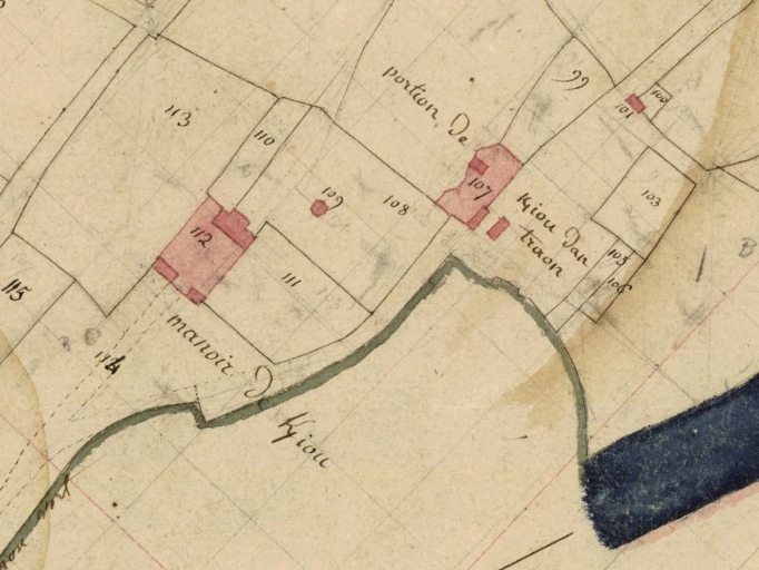 Commune de Gouezec. Section B dite de Keriou, feuille 1ère. Plan cadastral, dessin, Gouzillon géomètre, [s.d.]. (A.D. 29 ; série 3 P 132).