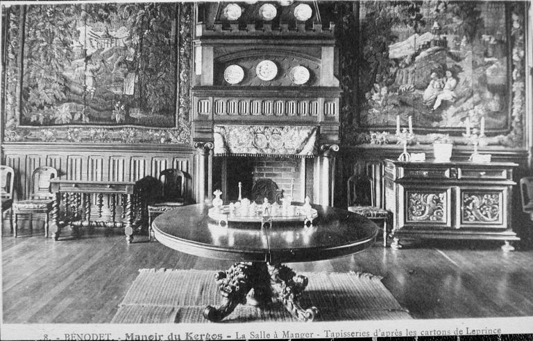 7. - BENODET. - Manoir du Kergos - La Salle à Manger - Tapisseries d'après les cartons de Leprince. (A.D. 35 ; 6 Fi CLOHARS-FOUESNANT 13).
