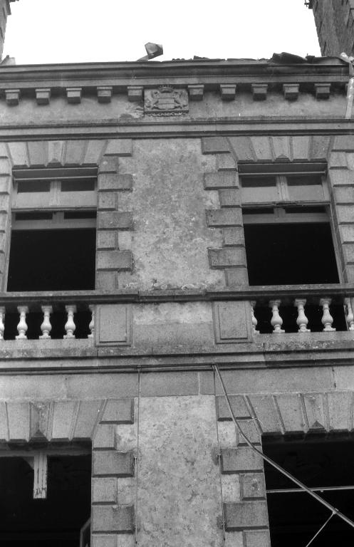 Edifice de plan symétrique composé d'un corps central encadré de pavillons saillants et de deux tours circulaires sur la façade principale. Maçonnerie de moellon enduit avec étage de soubassement, encadrements de baies, chaînes d'angles, bandeaux horizontaux et corniche en pierre de taille.