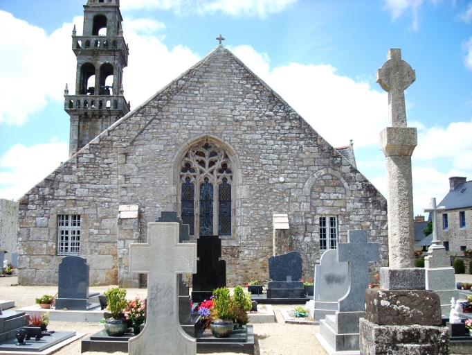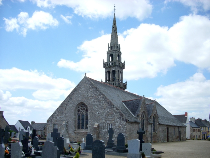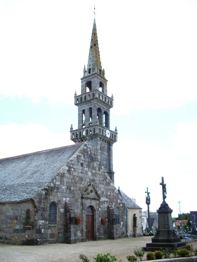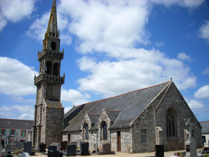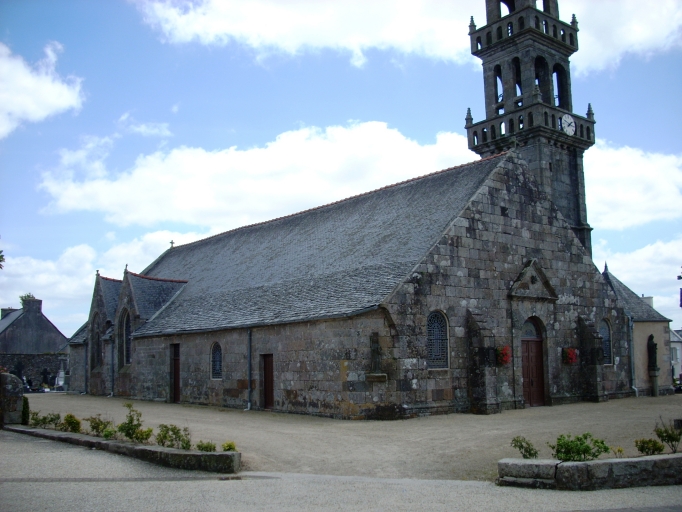 Edifice du 16e siècle (chapiteaux de la sixième travée) agrandie par l´abbé Richard Miorcec vers 1628 puis reconstruit en 1834 par le recteur Yves le Saout ; l'entrée de l' enclos porte la date 1771. Tour et clocher du 17e siècle.