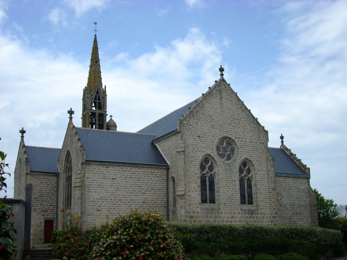Edifice construit en 1904 d´après les plans du chanoine Jean-Marie Abgrall. L'élévation ouest et le clocher proviennent de l'ancien édifice construit vers 1528-1540, construit par Alain de Rosmadec et Jeanne du Chastel.