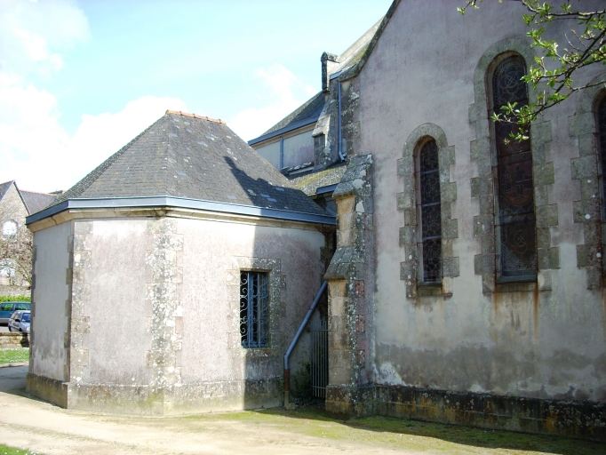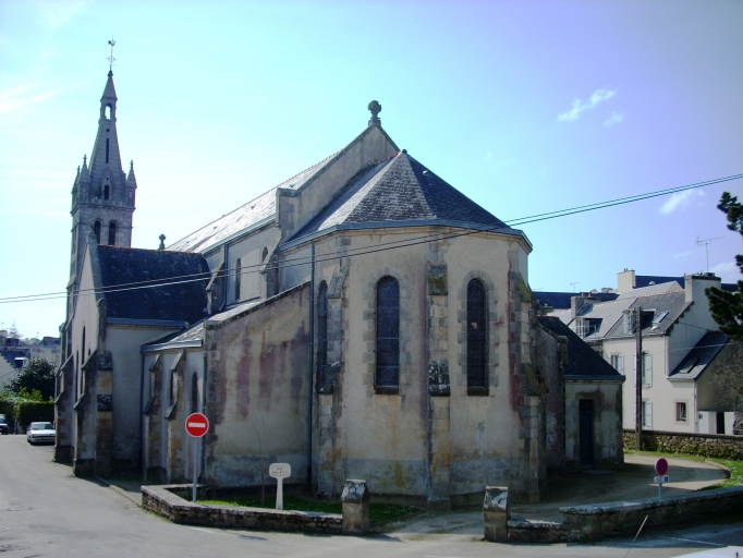 Edifice construit d´après les plans du maître d'oeuvre et prêtre Jean-Marie Abgrall en 1883. Une pierre à la base du clocher porte une inscription et la date de 1883. A l´intérieur, sur le mur nord du bras nord du transept, une plaque de marbre porte une inscription et la date de 1884. Inscription sur la croix : JUBILE 28 IX BRE 1886.