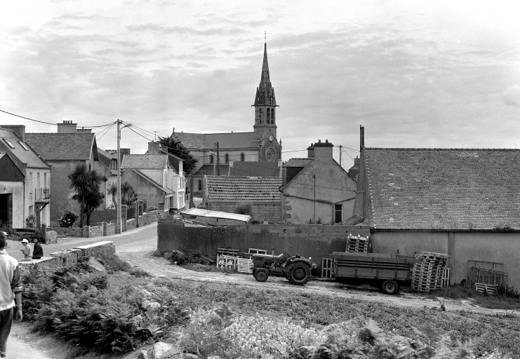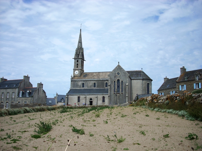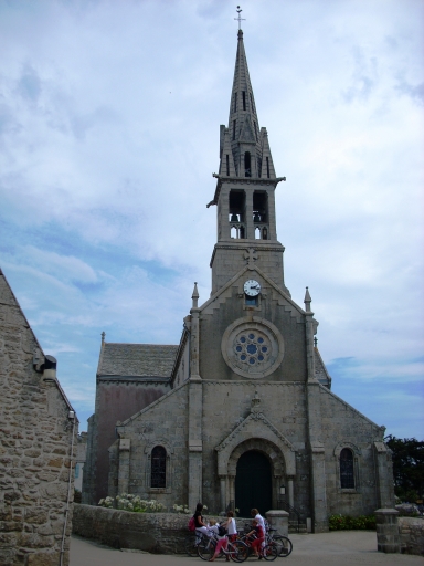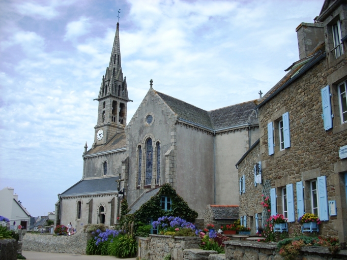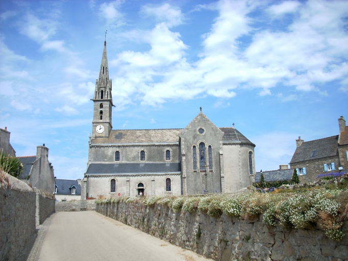 L' édifice actuel remplace in situ l' ancienne chapelle Notre-Dame (détruite), mentionnée en 1539, figurant sur le cadastre de 1846 et devenue église paroissiale en 1855. L' édifice de style néo-roman a été construit d' après les plans de l' architecte Edmond Puyo de Morlaix, et consacré en 1875 (date portée) . Révision du clocher par l' entrepreneur Jean-Louis Le Nour en 1889 (date portée) .